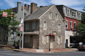 The Parsons-Taylor House was built in 1757 by Surveyor-General William Parsons and was later rented by George Taylor until his death in 1781. Taylor is noted as one of the signers of the Declaration of Independence, a member of the Continental Congress, and an ironmaster who aided in the American Revolutionary War effort. The house, listed on the National Register of Historic Places, is a 2-1/2 story, 2 bay stone dwelling in the Georgian style that has a three-part interior circular stairway.